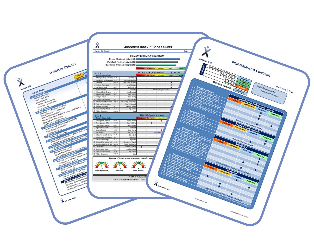 The JI assessment asks the individual to rank order each of the 18 value statements from high to low value. Each of the value statements has 9 evaluation combinations producing a corresponding score. These combinations create the 70 plus indicator patterns that are used to identify the work and personal strengths or areas in need of development.